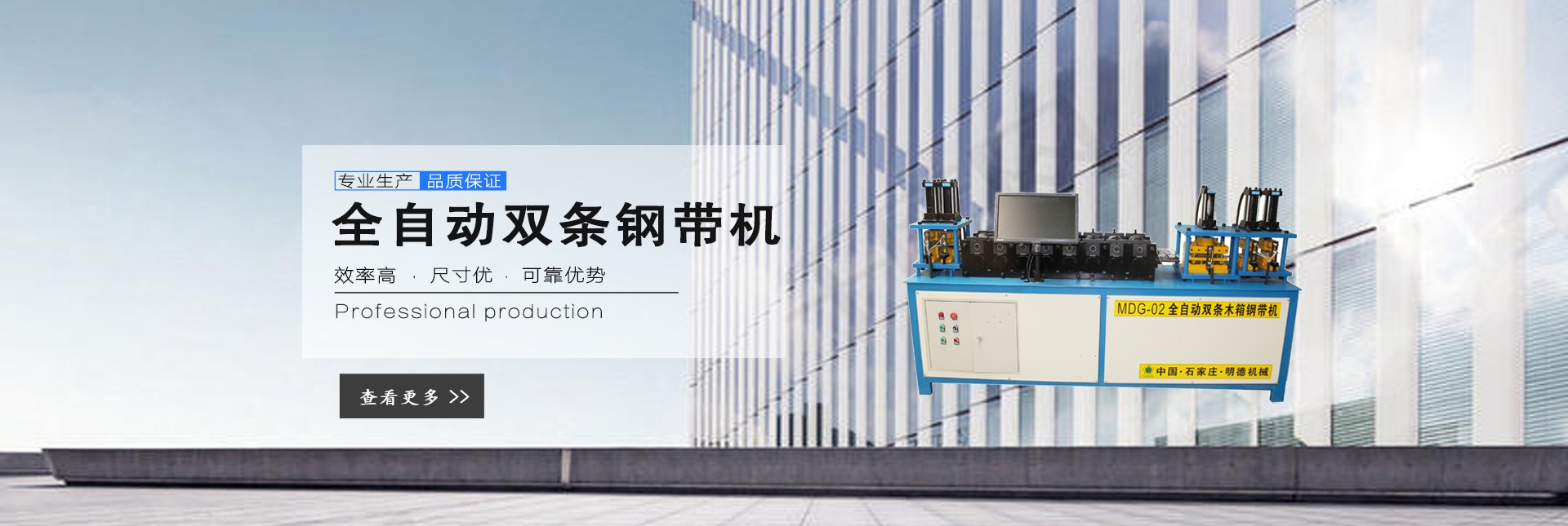 石家莊明德包裝機(jī)械有限公司是國內(nèi)專業(yè)生產(chǎn)木全自動木箱鋼帶機(jī)、半自動公母扣木箱打扣機(jī)、全自動雙排孔定長切斷機(jī)、美式托盤打釘機(jī)械、托盤刨槽機(jī)、倒角機(jī)、木包裝箱、木托盤的生產(chǎn)廠家。